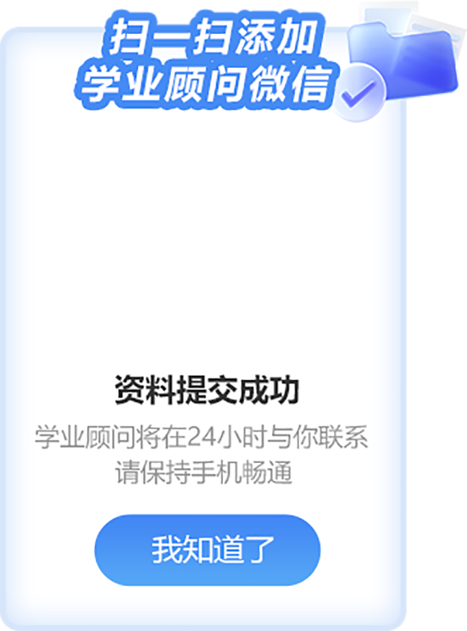 4、提示“提交成功”后,學業顧問將在24小時內對您的信息進行審核,并解答您的相關問題,請保持聯系方式暢通。