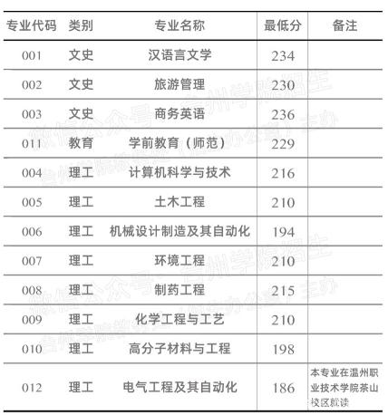 溫州商學(xué)院2020年專(zhuān)升本錄取分?jǐn)?shù)線(xiàn)