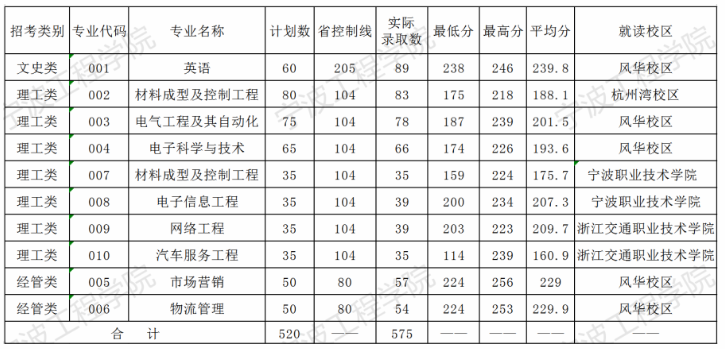 寧波工程學(xué)院2020年專(zhuān)升本錄取分?jǐn)?shù)線(xiàn)