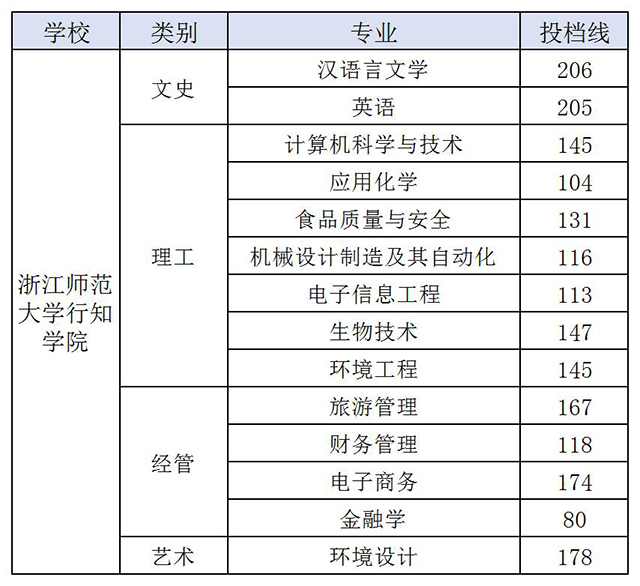 浙江師范大學(xué)行知學(xué)院2020年專(zhuān)升本錄取分?jǐn)?shù)線(xiàn)