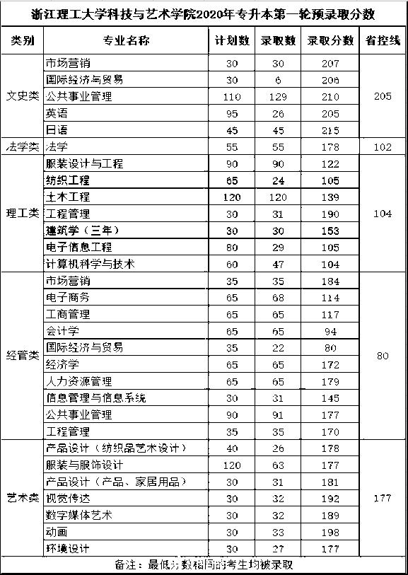 浙江理工大學(xué)科技與藝術(shù)學(xué)院2020年專(zhuān)升本錄取分?jǐn)?shù)線(xiàn)