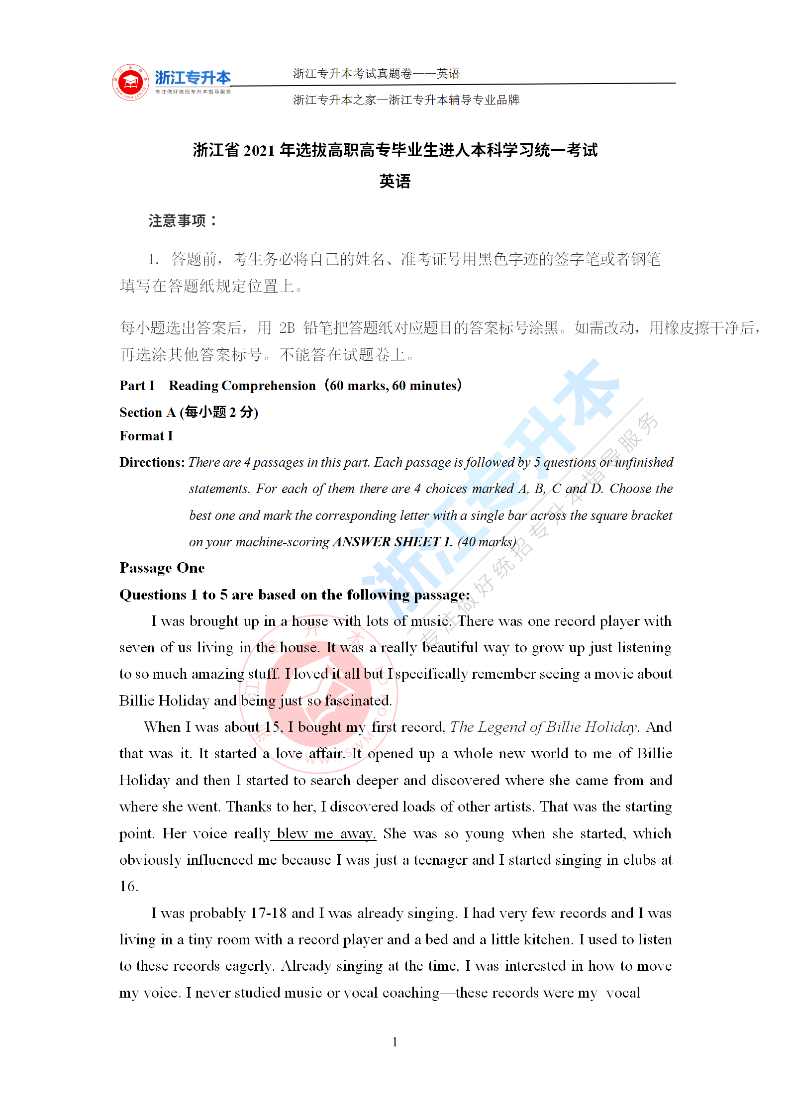 浙江專升本 >統招專升本 > 專升本試題題庫 > 歷年真題 > 2021年浙江專升本《英語》考試真題