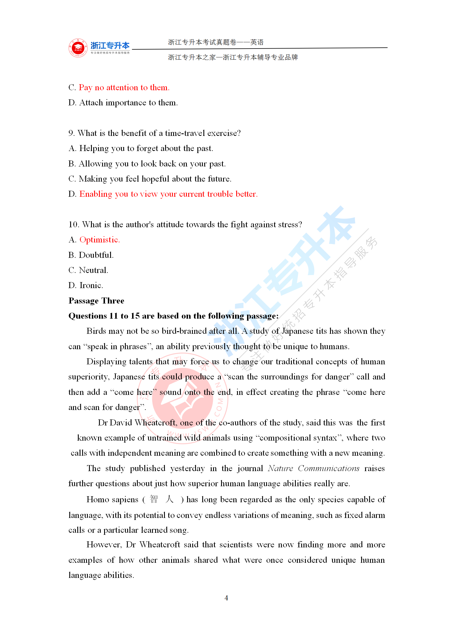 2021年浙江專升本《英語》考試真題