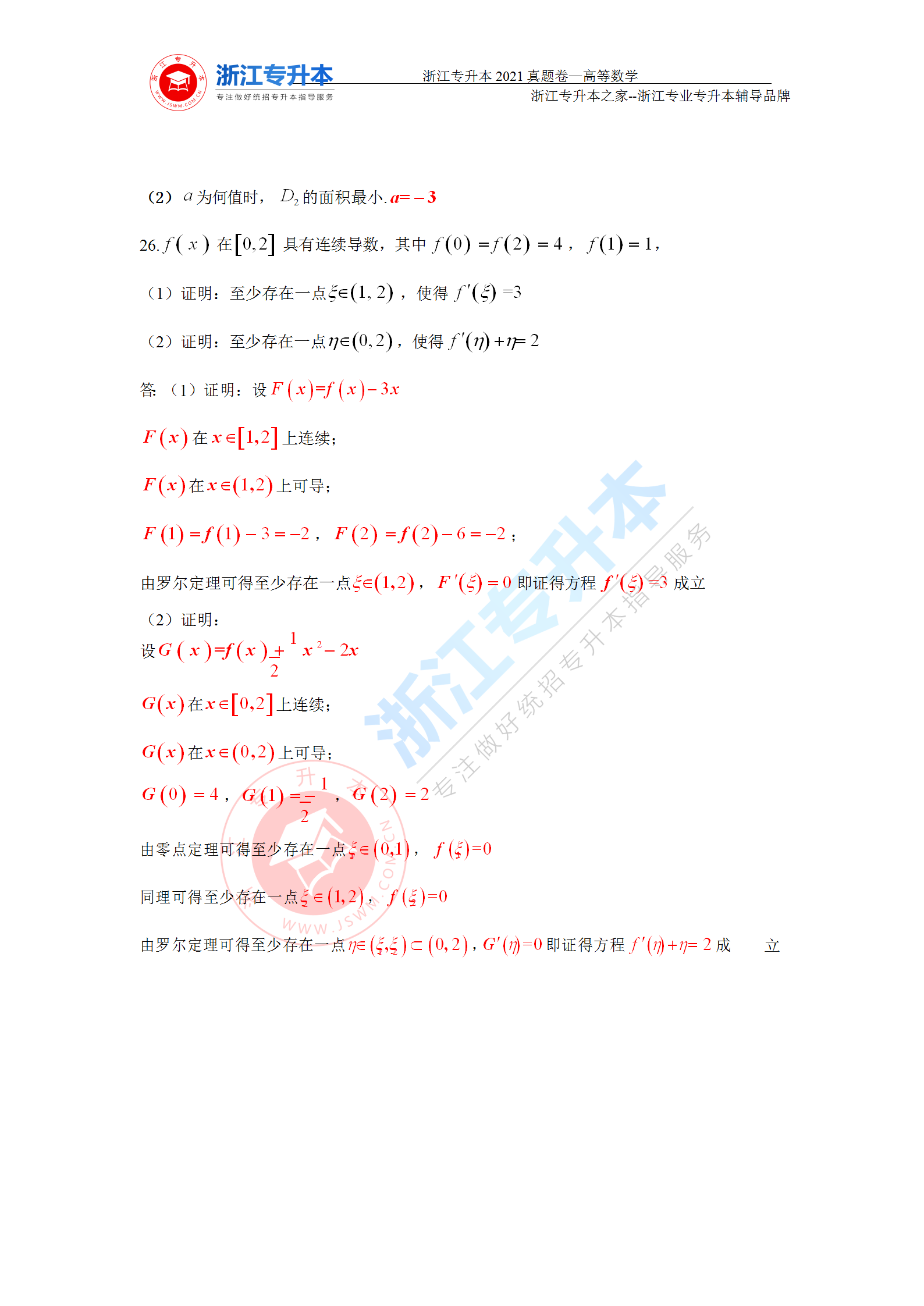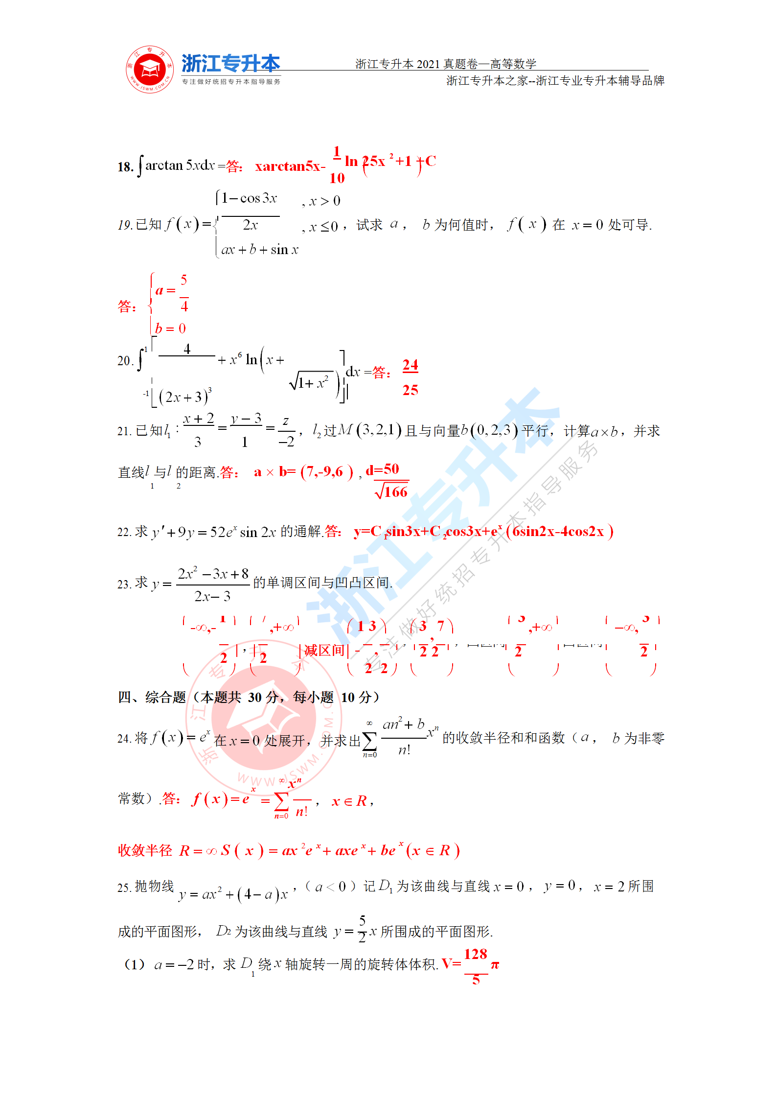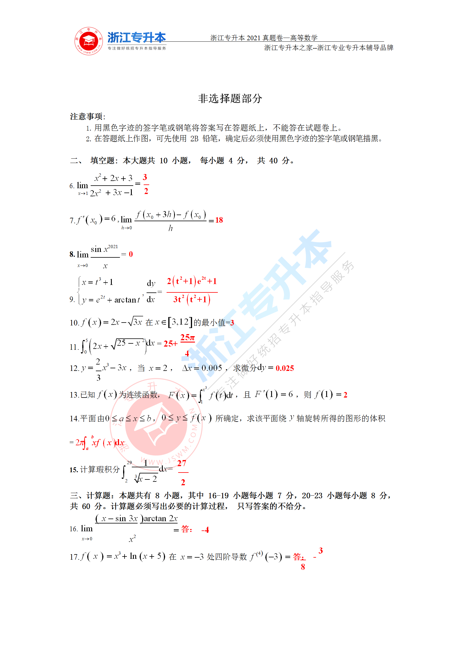 點(diǎn)擊下載:2021年浙江專升本《高等數(shù)學(xué)》答案