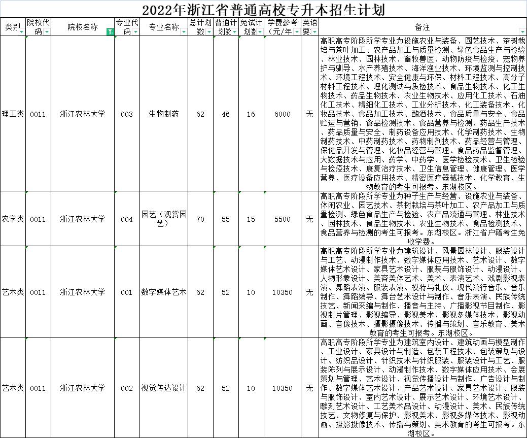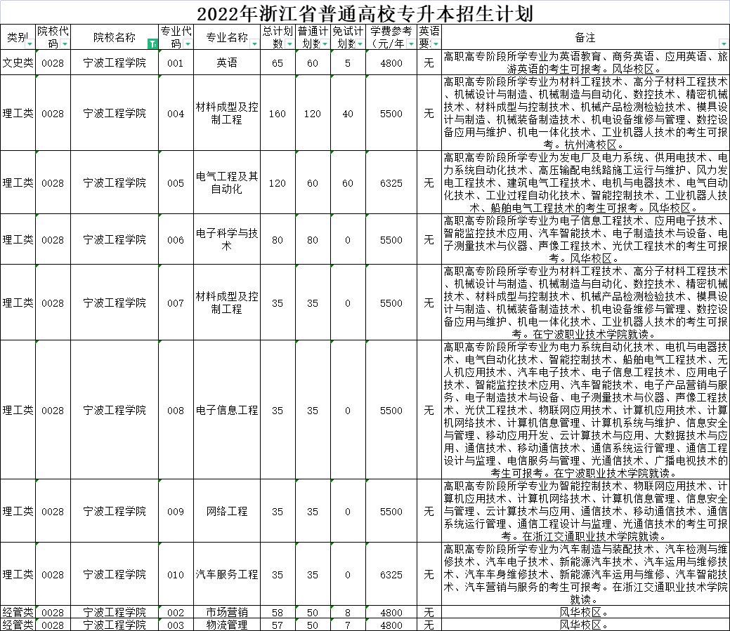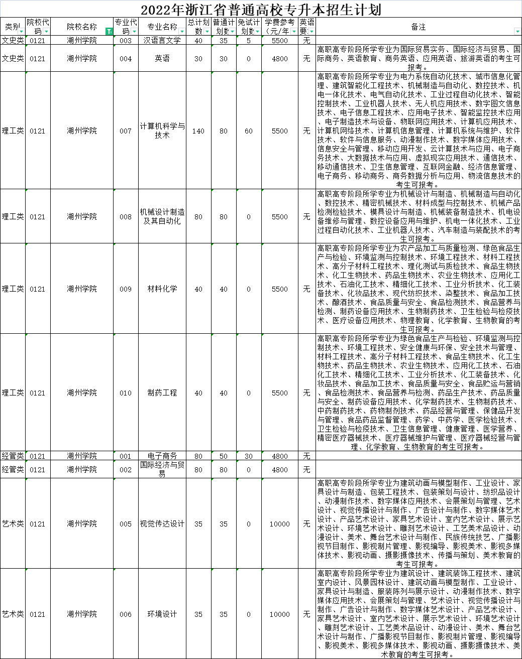 | 理工類 | 0020 | 杭州師范大學 | 008 | 環境工程 | 40 | 40 | 0 | 6000 | 無 | 高職高專階段所學專業為設施農業與裝備、農產品加工與質量檢測、綠色食品生產與檢驗、園林技術、工程測量技術、環境監測與控制技術、環境工程技術、安全健康與環保、安全技術與管理、工程安全評價與監理、材料工程技術、高分子材料工程技術、風景園林設計、園林工程技術、建筑工程技術、建筑設備工程技術、供熱通風與空調工程技術、建筑電氣工程技術、建筑智能化工程技術、消防工程技術、建設工程管理、工程造價、市政工程技術、給排水工程技術、水文測報技術、水利工程、水利水電建筑工程、理化測試與質檢技術、工業工程技術、化工生物技術、藥品生物技術、應用化工技術、石油化工技術、精細化工技術、工業分析技術、化工裝備技術、食品檢測技術、化學制藥技術、道路橋梁工程技術、化學教育的考生可報考。下沙校區就讀。 |