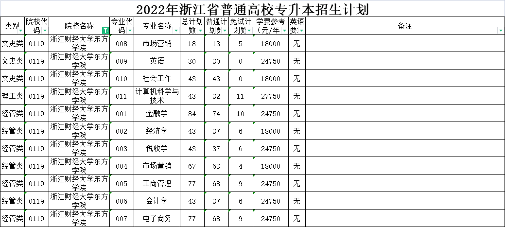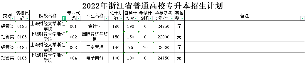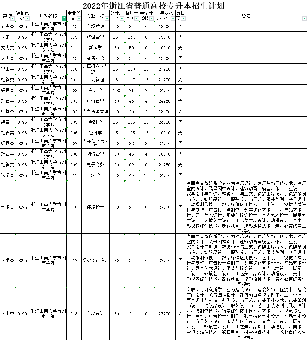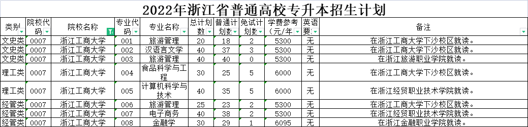 | 經管類 | 0006 | 杭州電子科技大學 | 007 | 電子商務 | 50 | 50 | 0 | 5300 | 無 | 在浙江商業職業技術學院就讀。 |