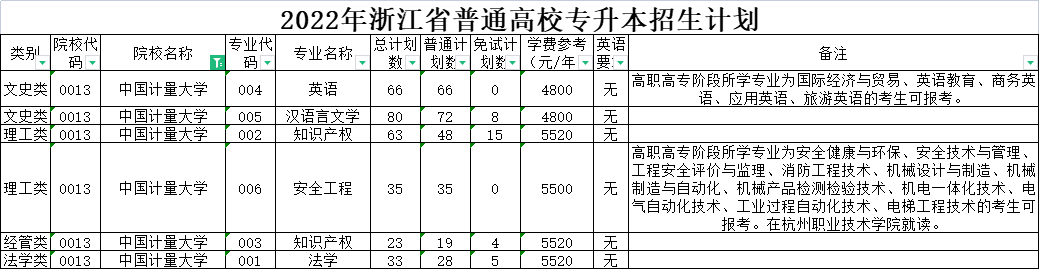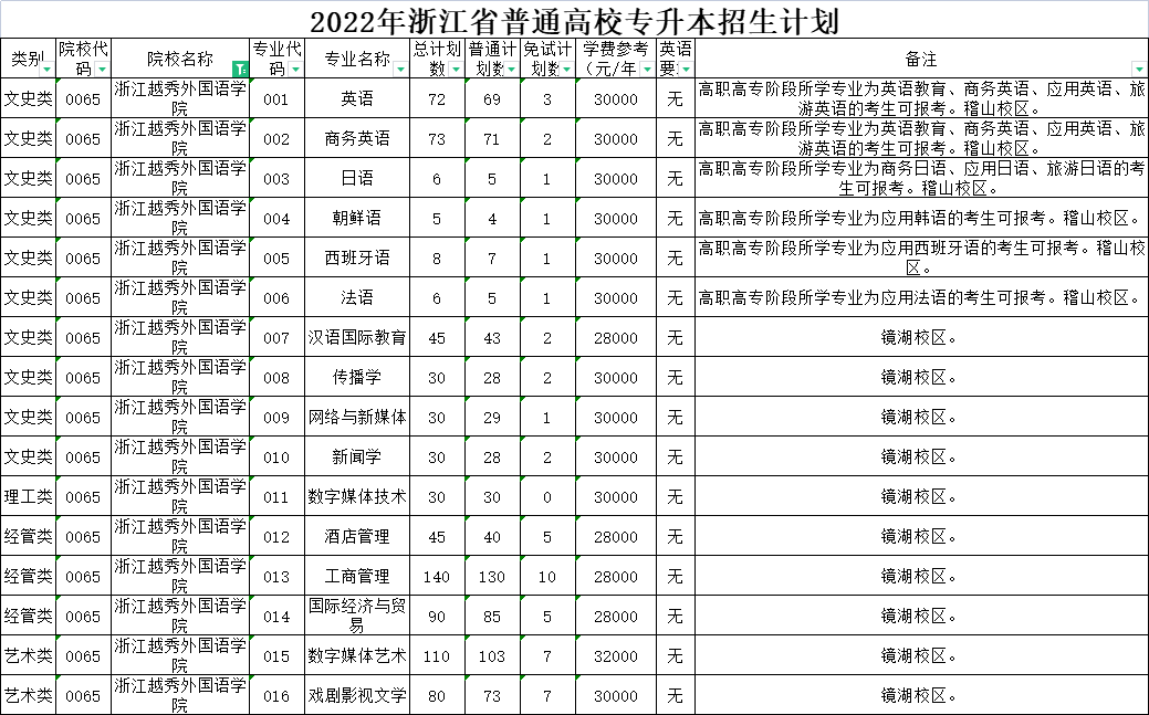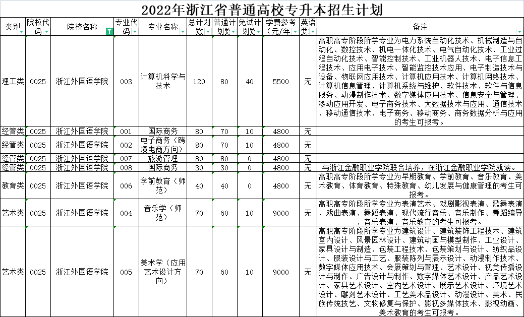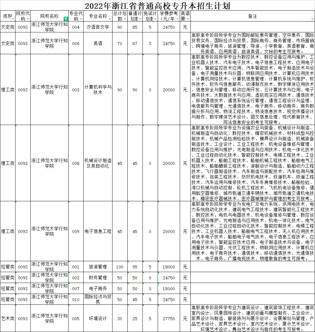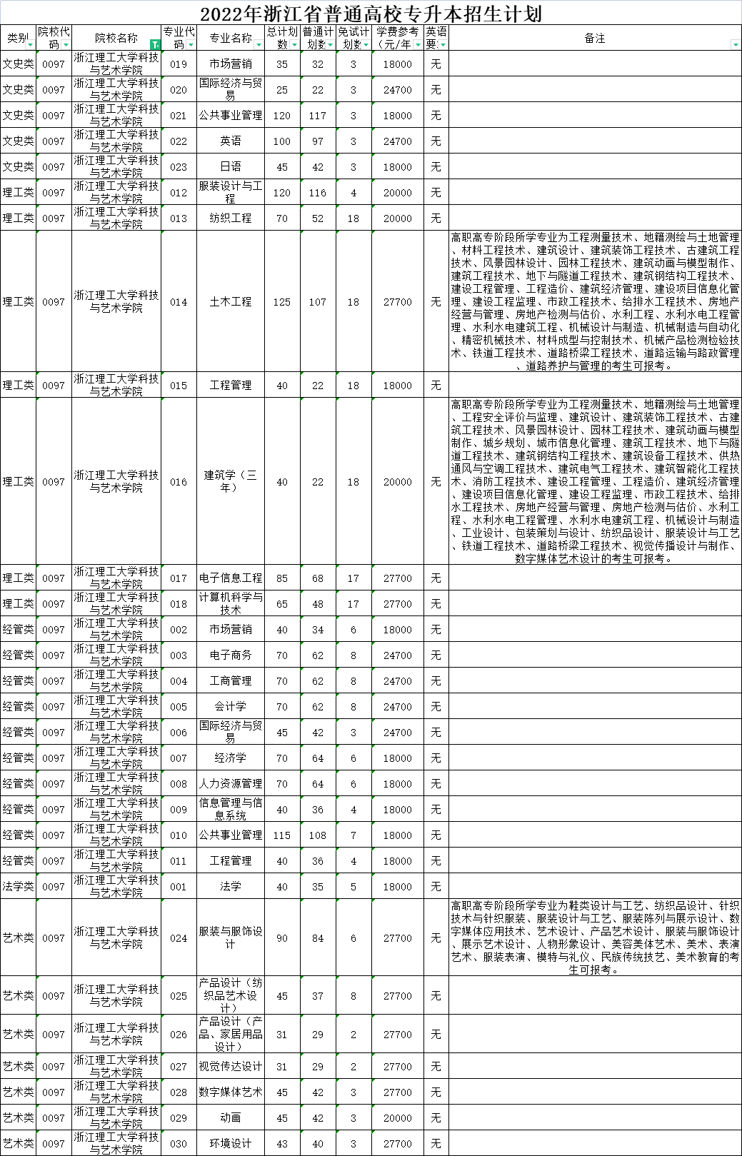 | 文史類 | 0020 | 杭州師范大學 | 001 | 英語 | 170 | 170 | 0 | 5300 | 無 | 高職高專階段所學專業為國際貿易實務、國際經濟與貿易、國際商務、英語教育、商務英語、應用英語、旅游英語的考生可報考。下沙校區就讀。 |