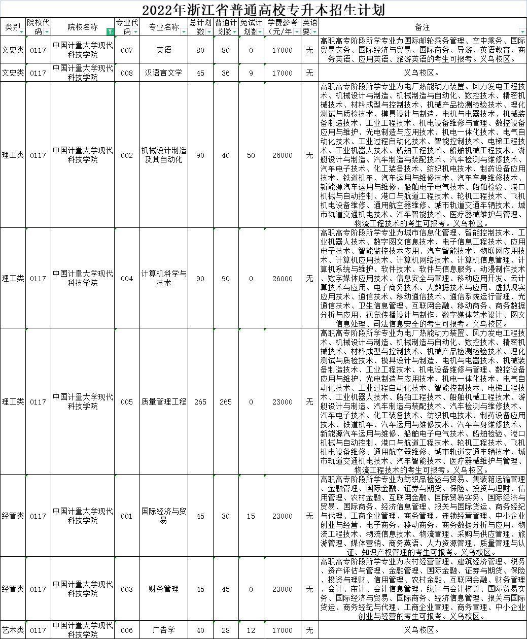 | 經管類 | 0006 | 杭州電子科技大學 | 008 | 國際經濟與貿易 | 50 | 35 | 15 | 5300 | 無 | 在浙江商業職業技術學院就讀。 |