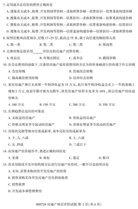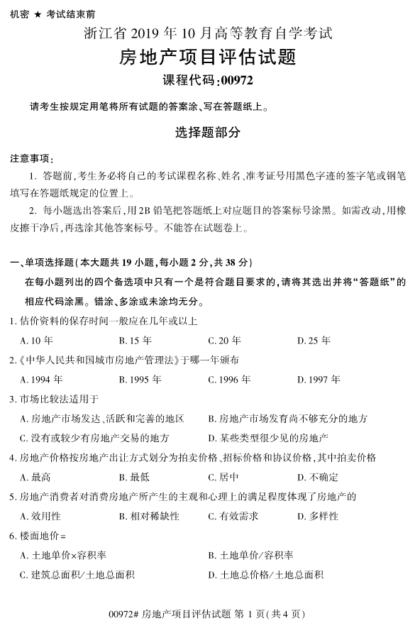 對于報考浙江專升本的考生來說,想要做好復習備考工作,除了熟記教材中的知識點以外,適當的真題訓練也是十分必要的。今天小編要和考生們分享的是2019年10月份浙江自考00972房地產項目評估試題。