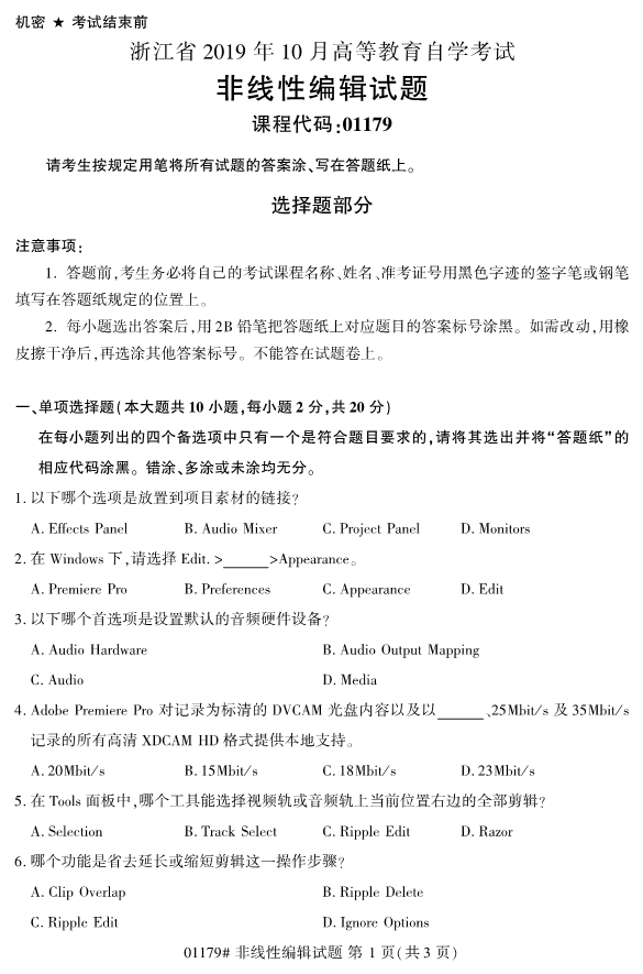 想要順利通過浙江自考,考生們除了需要在日常做好復習備考工作之外,還可以通過真題訓練來檢驗自己的學習成果。所以小編為考生們整理了2019年10月浙江自考01179非限制編輯試題。