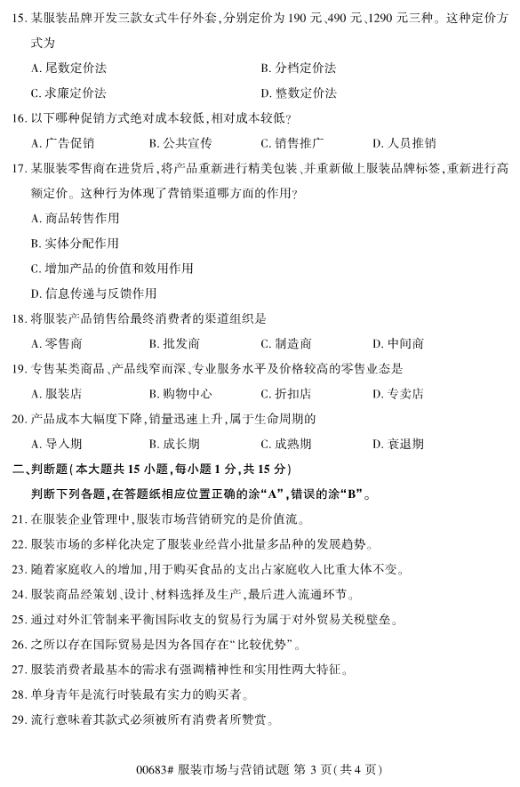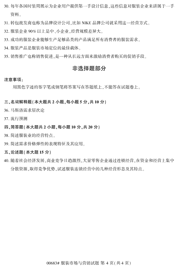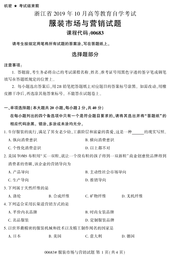 浙江專升本 >自學考試 > 歷年真題 > 2019年10月浙江自考00683服裝市場與營銷試題