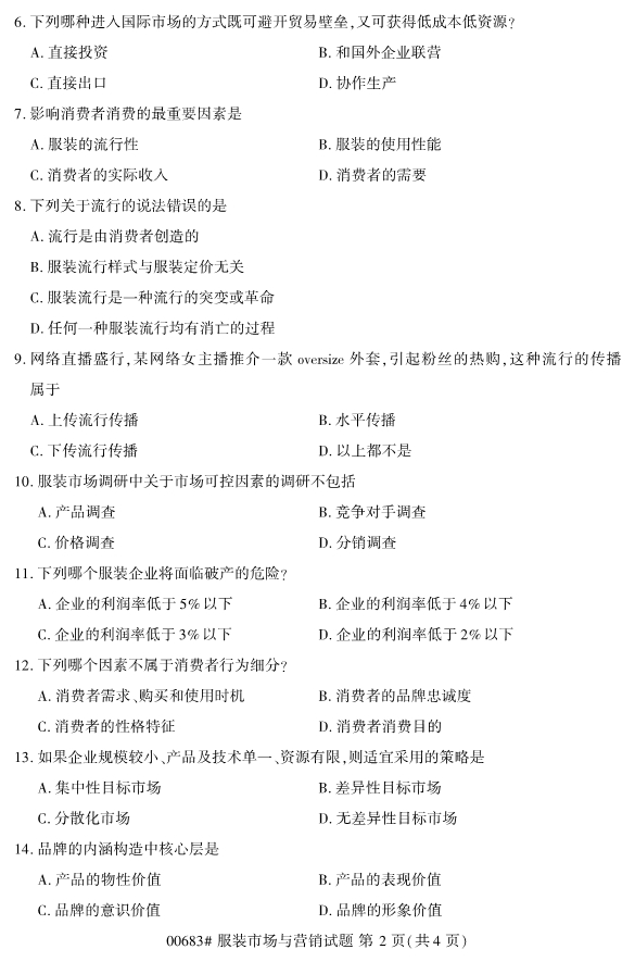 2019年10月浙江自考00683服裝市場與營銷試題