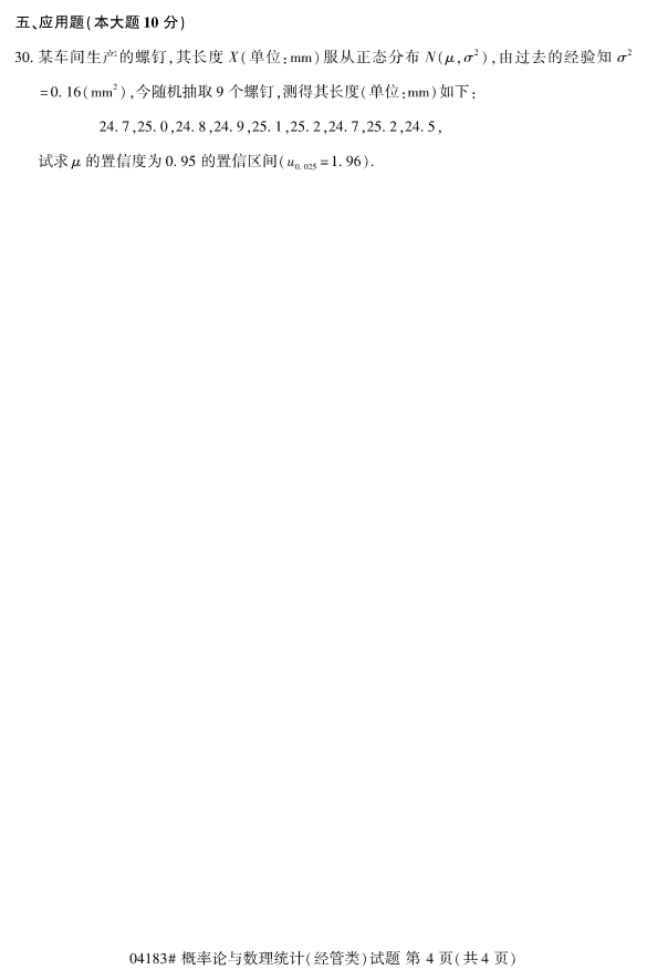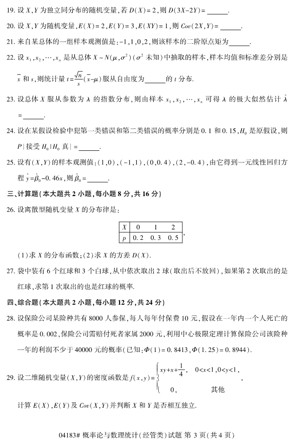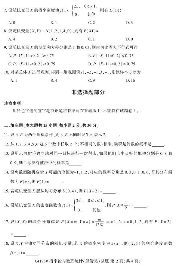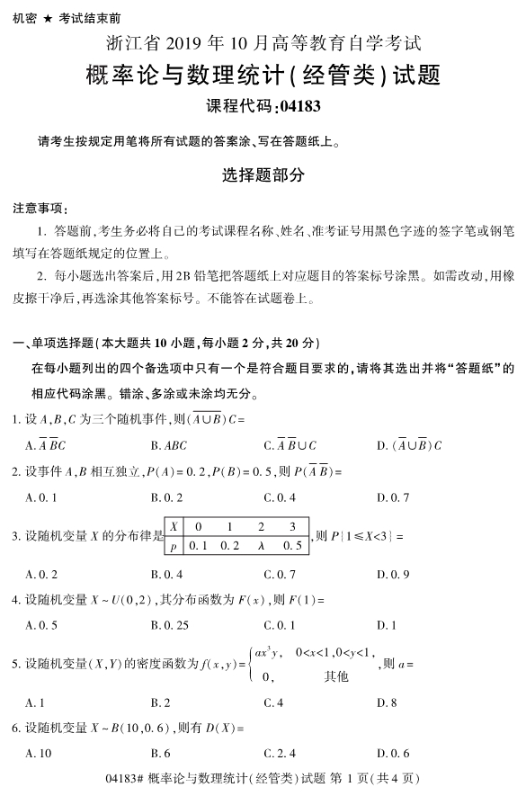 2019年已經要接近尾聲了,但是對于想要報考2020年4月份浙江自考的考生們來說,現階段考生們自考可以開始進行復習備考工作。并且在復習備考中,適當地真題訓練是十分必要的,所以浙江專升本為各位考生們整理了2019年10月浙江自考04183概率論與數理統計(經管類)試題。