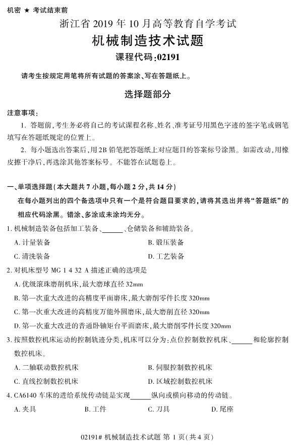 距離2020年4月份的浙江自考專升本考試還剩4個月左右的時間,在這個期間考生們要做好復習備考工作。為了幫助考生們備考,掌握考試的重點,小編為大家帶來2019年10月浙江自考02191機械制造技術試題。