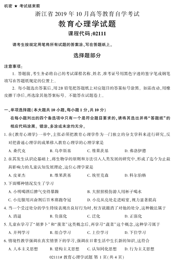 【結(jié)尾】以上就是關(guān)于2019年10月浙江自考02111教育心理學(xué)試題的全部?jī)?nèi)容,考生如果想獲得更多關(guān)于浙江專(zhuān)升本相關(guān)資訊,如浙江專(zhuān)升本政策公告、統(tǒng)招專(zhuān)升本、成考專(zhuān)升本、自考專(zhuān)升本、網(wǎng)教專(zhuān)升本、專(zhuān)升本常見(jiàn)問(wèn)題等相關(guān)信息,敬請(qǐng)關(guān)注我們浙江專(zhuān)升本網(wǎng)(http://www.205760.com/)。
