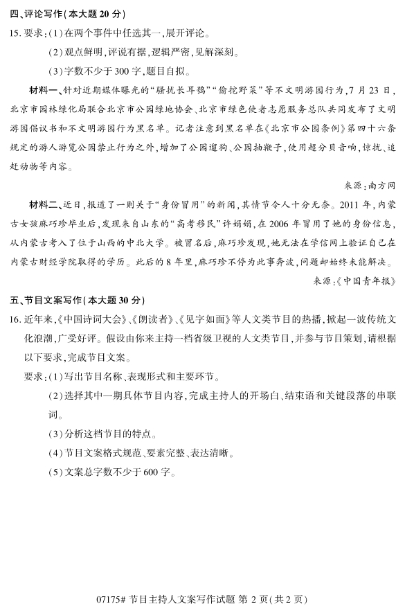 【結尾】以上就是關于2019年10月浙江自考07175節目主持人文案寫作試題的全部內容,考生如果想獲得更多關于浙江專升本相關資訊,如浙江專升本政策公告、統招專升本、成考專升本、自考專升本、網教專升本、專升本常見問題等相關信息,敬請關注我們浙江專升本網(http://www.205760.com/)。