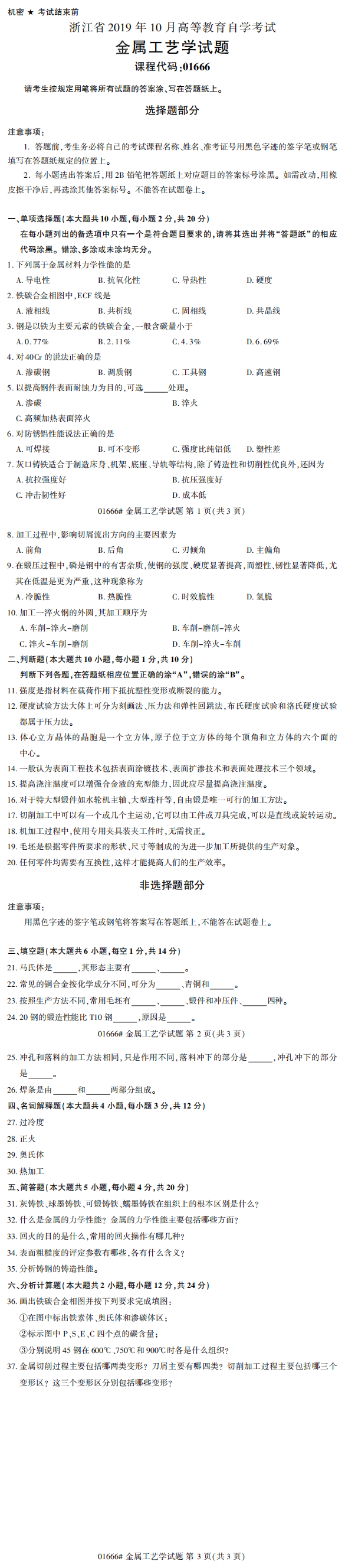 對于考生們來說,想要報考2020年4月的浙江自考專升本考試,考生們現(xiàn)階段就要開始自己的復習備考工作。在開始正式復習備考之前,考生們首先需要確定自己的報考專業(yè)和報考院校,這樣才能更有針對性的開始復習備考工作。為了幫助考生們復習備考,小編整理了2019年10月浙江自考01666金屬工藝學試題。