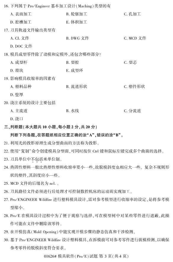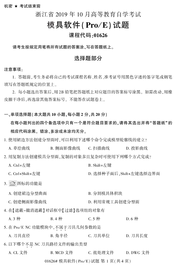 【結(jié)尾】以上就是關(guān)于2019年10月浙江自考專升本01626模具軟件(Pro/E)試題的全部內(nèi)容,考生如果想獲得更多關(guān)于浙江專升本相關(guān)資訊,如浙江專升本政策公告、統(tǒng)招專升本、成考專升本、自考專升本、網(wǎng)教專升本、專升本常見問題等相關(guān)信息,敬請關(guān)注我們浙江專升本網(wǎng)(http://www.205760.com/)。